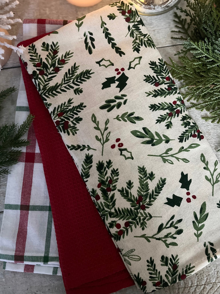The holly berry tea towel set