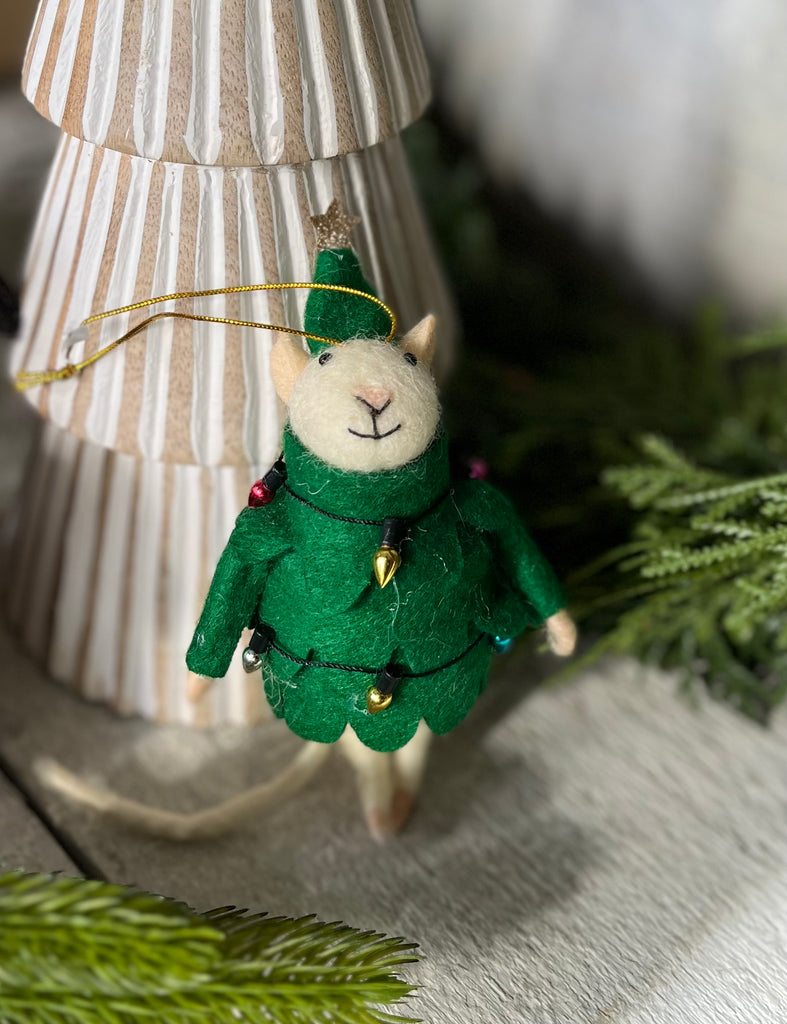 Made from soft wool & polyester felt, these adorable mice are perfect hanging on the tree, on a wine bottle or sitting on a shelf supported by their wire tails.