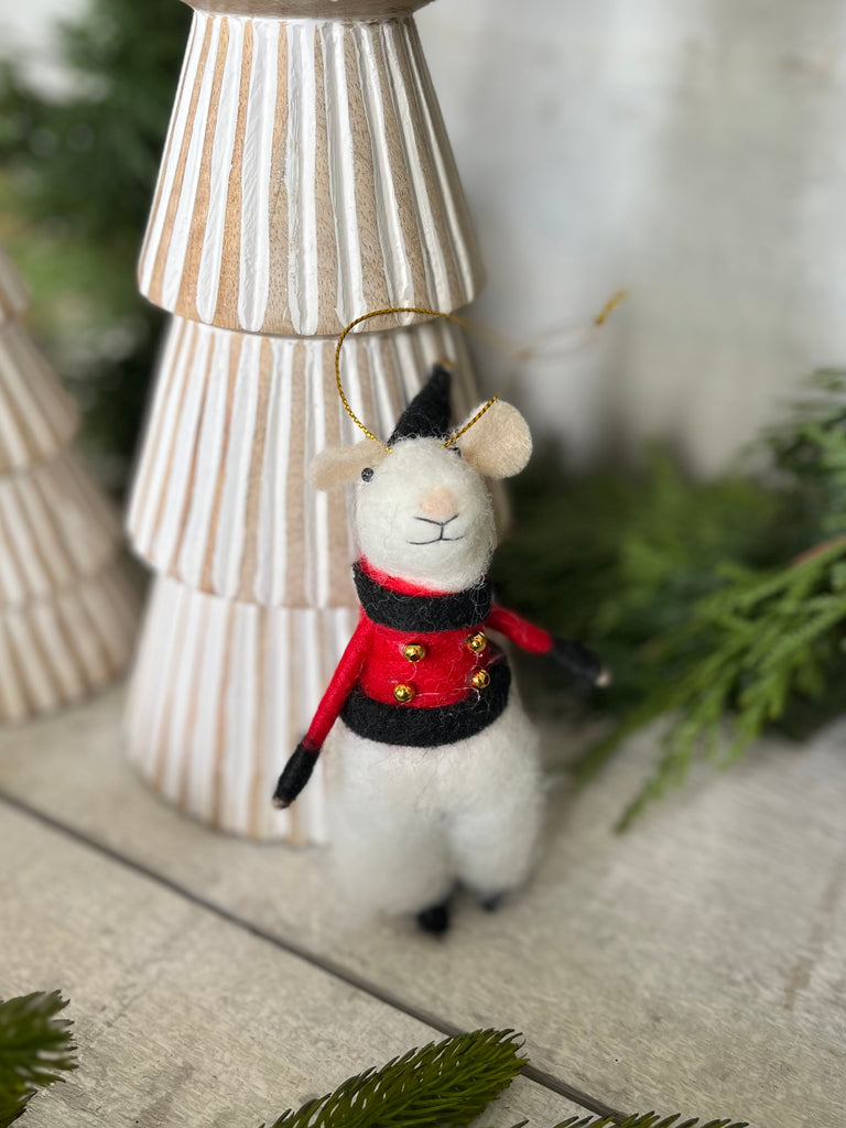 Made from soft wool & polyester felt, these adorable mice are perfect hanging on the tree, on a wine bottle or sitting on a shelf supported by their wire tails.